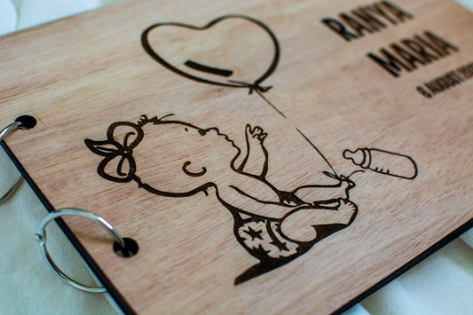 Album Foto de Botez Personalizat din lemn GuestBook Bebelus Fetita 30x21 cm