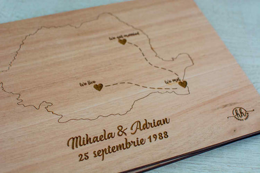 Album Foto A4 GuestBook de Nunta Personalizat HH826 din lemn Harta Romaniei