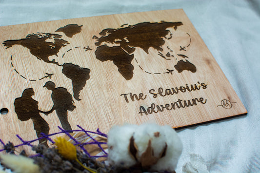 Album Foto de Nunta Personalizat din lemn GuestBook Inconjurul Lumii 30x21 cm