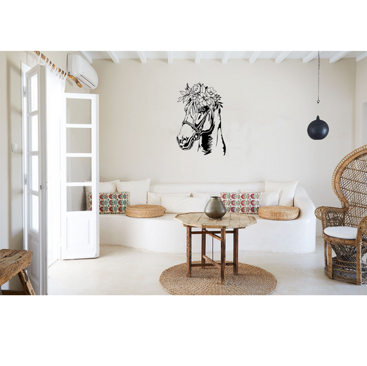 Decor perete Cap de Cal cu Flori HH750 din lemn