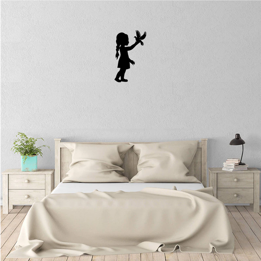 Decor perete Fetita cu Porumbel HH692 din lemn