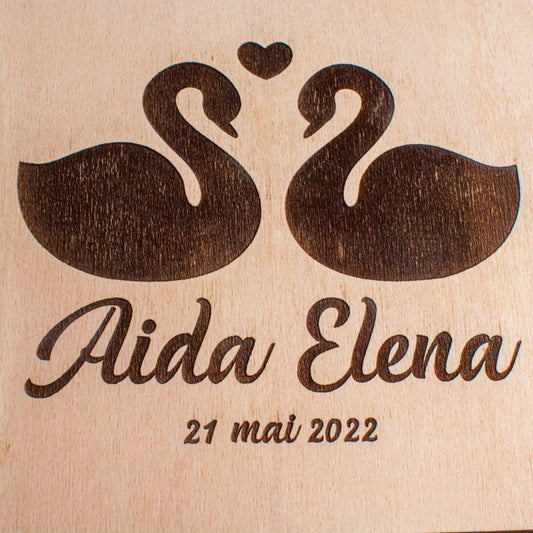 Album Foto GuestBook Nunta HH1580 Personalizat din lemn - Lebede 30 cm x 23