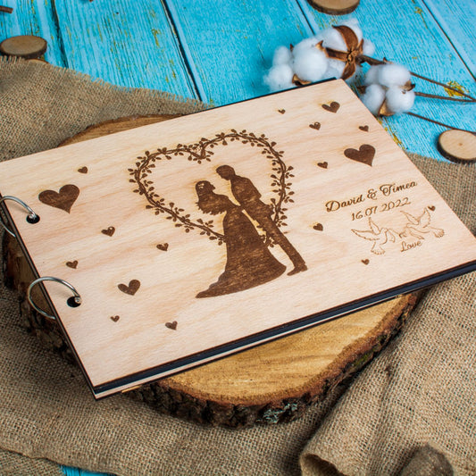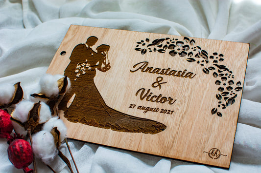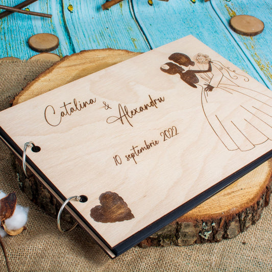 Album Foto de Nunta Personalizat din lemn GuestBook, Mire si Mireasa 30 cm x 21 cm