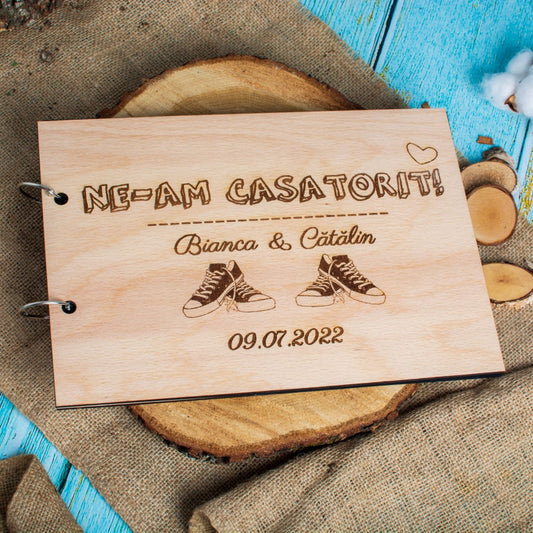 Album Foto GuestBook Nunta HH1592 Personalizat din lemn Adidasi 30 x 21