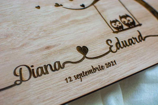 Album Foto GuestBook A4 de Nunta Personalizat HH676 din lemn Inimi Bufnite 30x21 cm