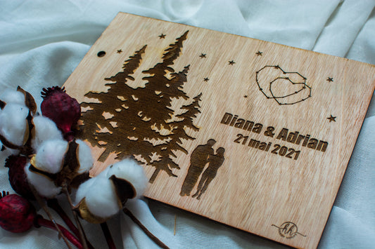 Album Foto GuestBook A4 de Nunta Personalizat HH676 din lemn Inimi Natura Constelatii 30x21 cm