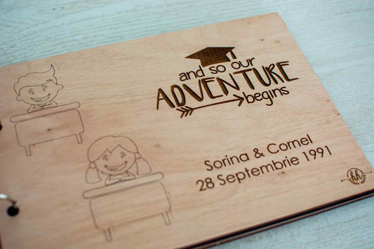Album Foto GuestBook A4 Nunta Personalizat din lemn HH833 Scoala 30x21 cm