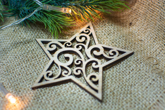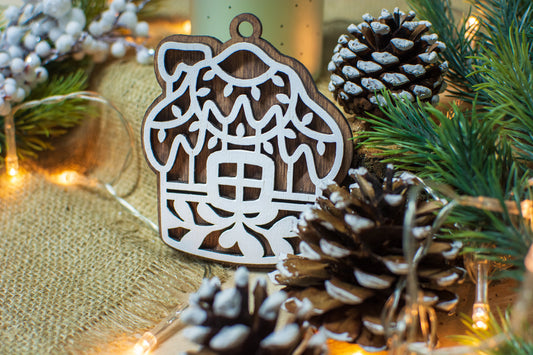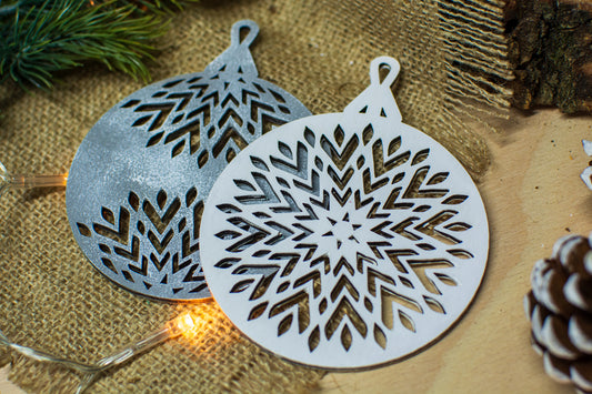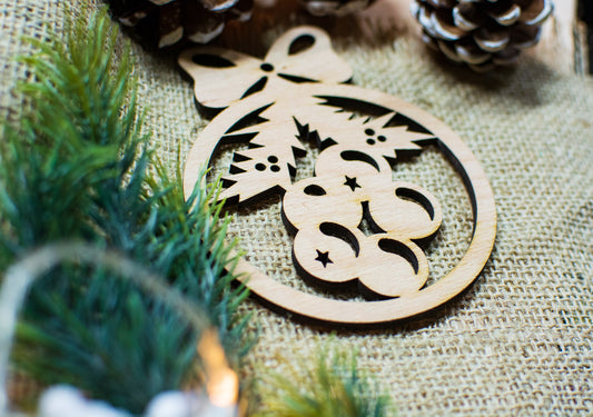 Set 2 globuri de Craciun HH881 din Lemn Model Traditional de Craciun
