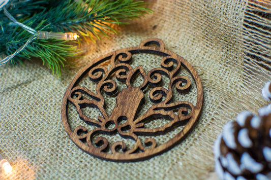 Set 2 globuri de Craciun HH917 din Lemn Model Manusa Traditioanala Craciun