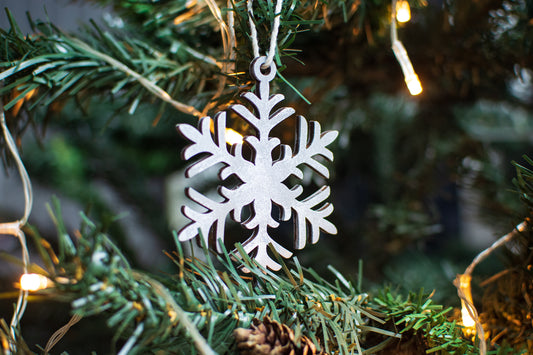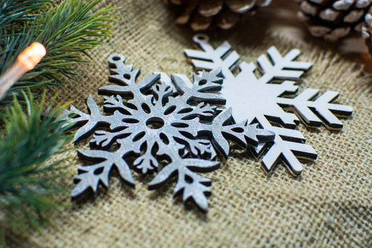 Set 4 globuri de Craciun HH859 din Lemn Model Fulg de nea