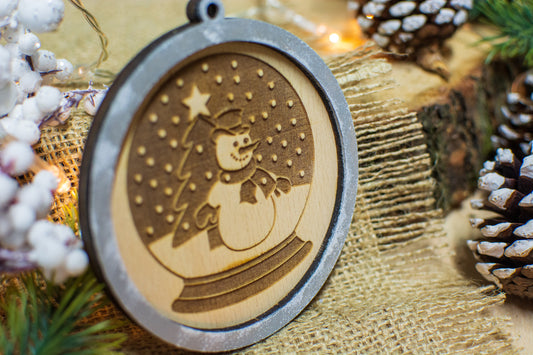 Set 4 globuri de Craciun HH891 din Lemn Model Om de Zapada