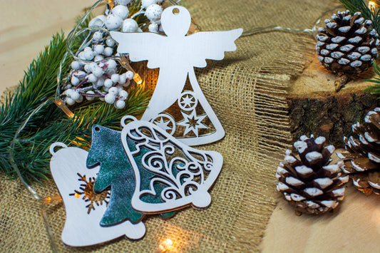 Set 3 globuri de Craciun HH883 din Lemn Model Traditional de Craciun