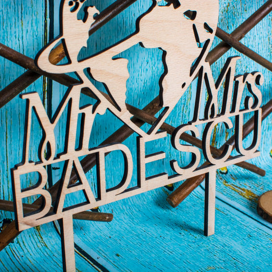 Topper din Lemn HH1600 Personalizat Nunta Inconjurul Lumii 20 x 30 cm