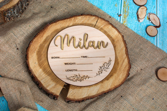 Decor Banut din Lemn HH1620 Personalizat cu Detaliile Nasterii