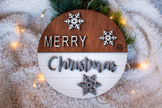Decor perete usa de Craciun HH924 din lemn Merry Christmas Fulgi de nea