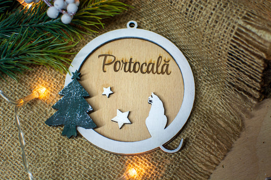 Glob de Craciun Personalizat HH892 din Lemn Model Pisica