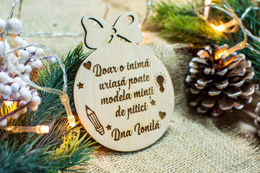 Glob de Craciun Personalizat HH922 din Lemn Model Profesor Educator
