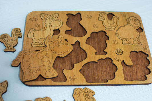 Puzzle din lemn Personalizabil HandyHands - Animale de ferma