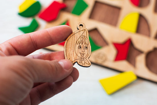 Puzzle din lemn Personalizabil HandyHands - Forme Geometrice Masha si ursul