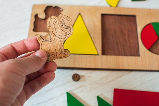 Puzzle din lemn Personalizabil HandyHands - Forme Geometrice catel si pisica