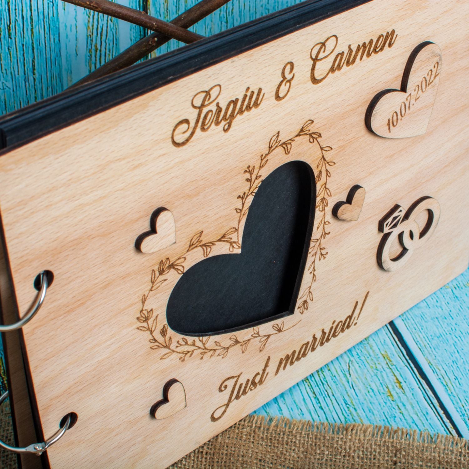 Album Foto GuestBook Nunta HH1589 Personalizat din lemn Inimi 30 x 21