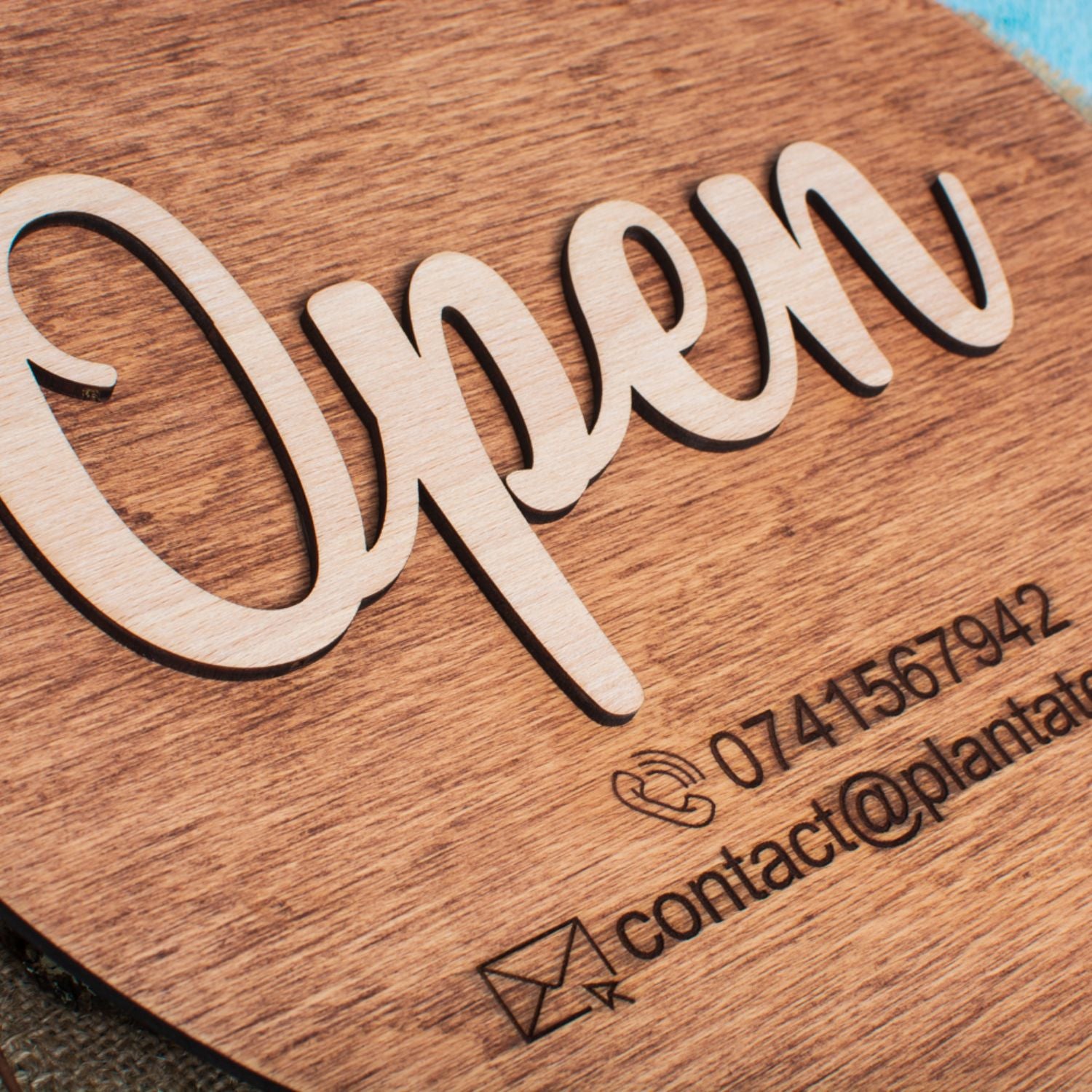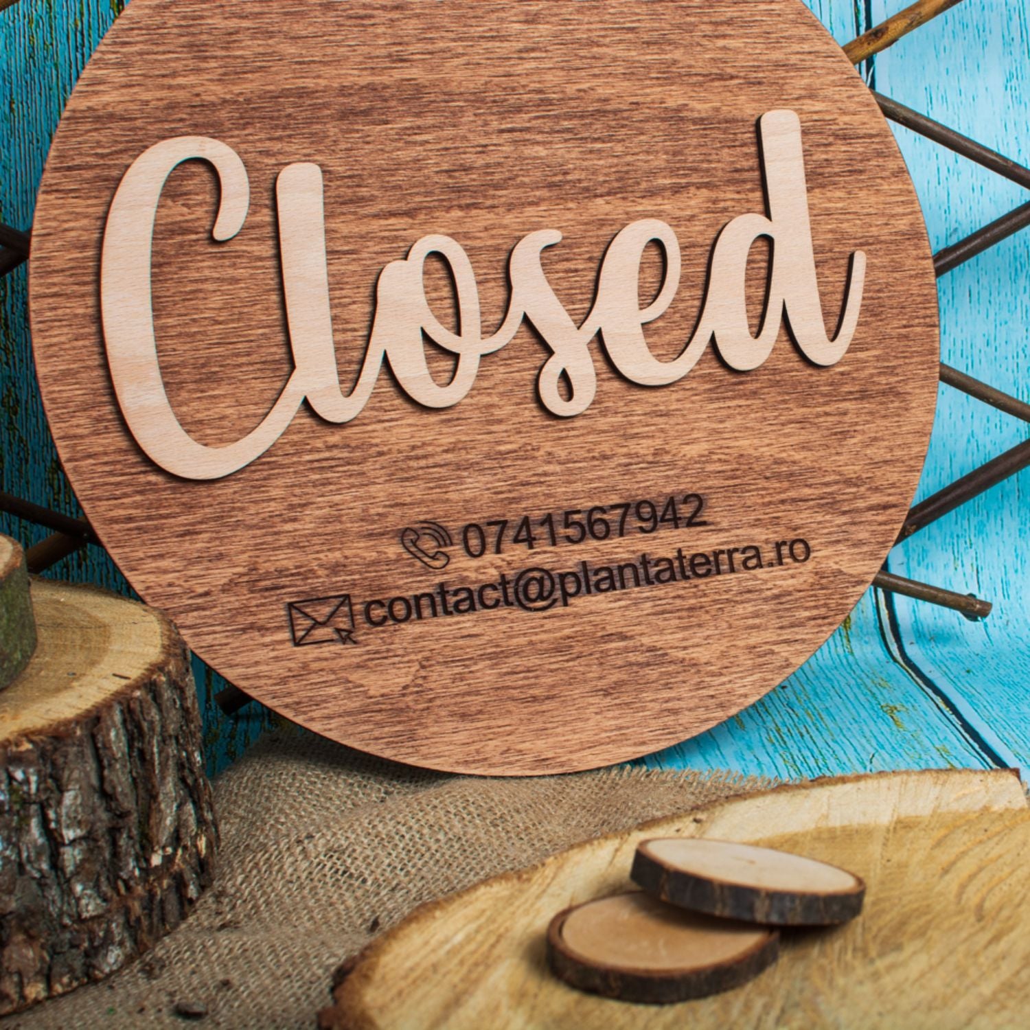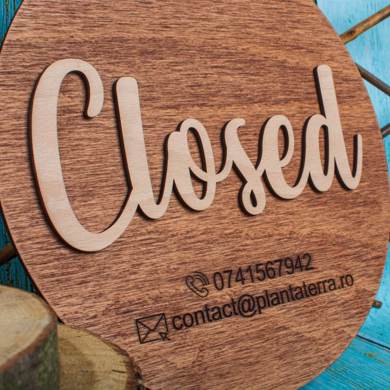 Semn de Usa cu Doua Fete din lemn HH1597 Personalizat Deschis Inchis 25 cm
