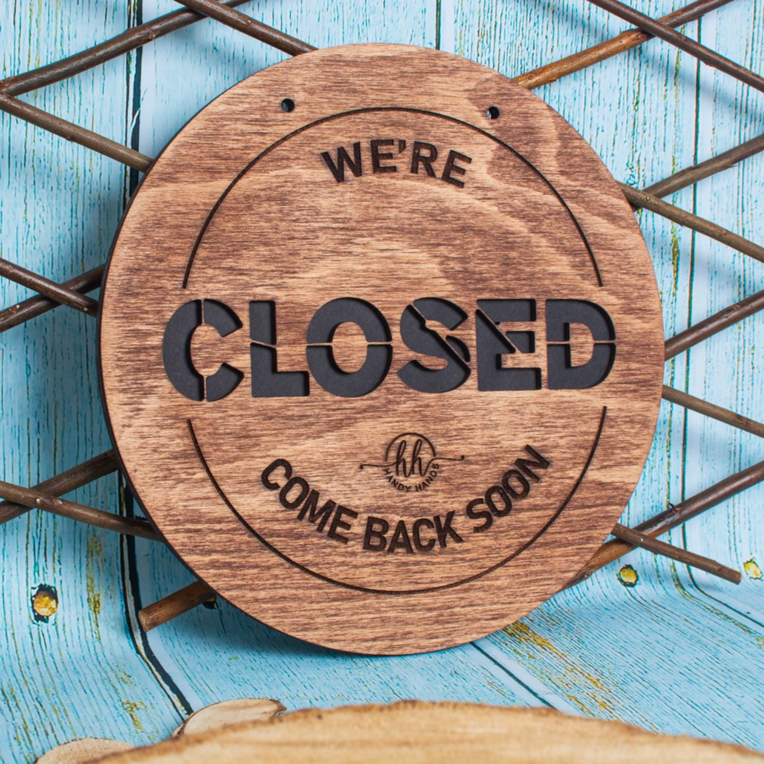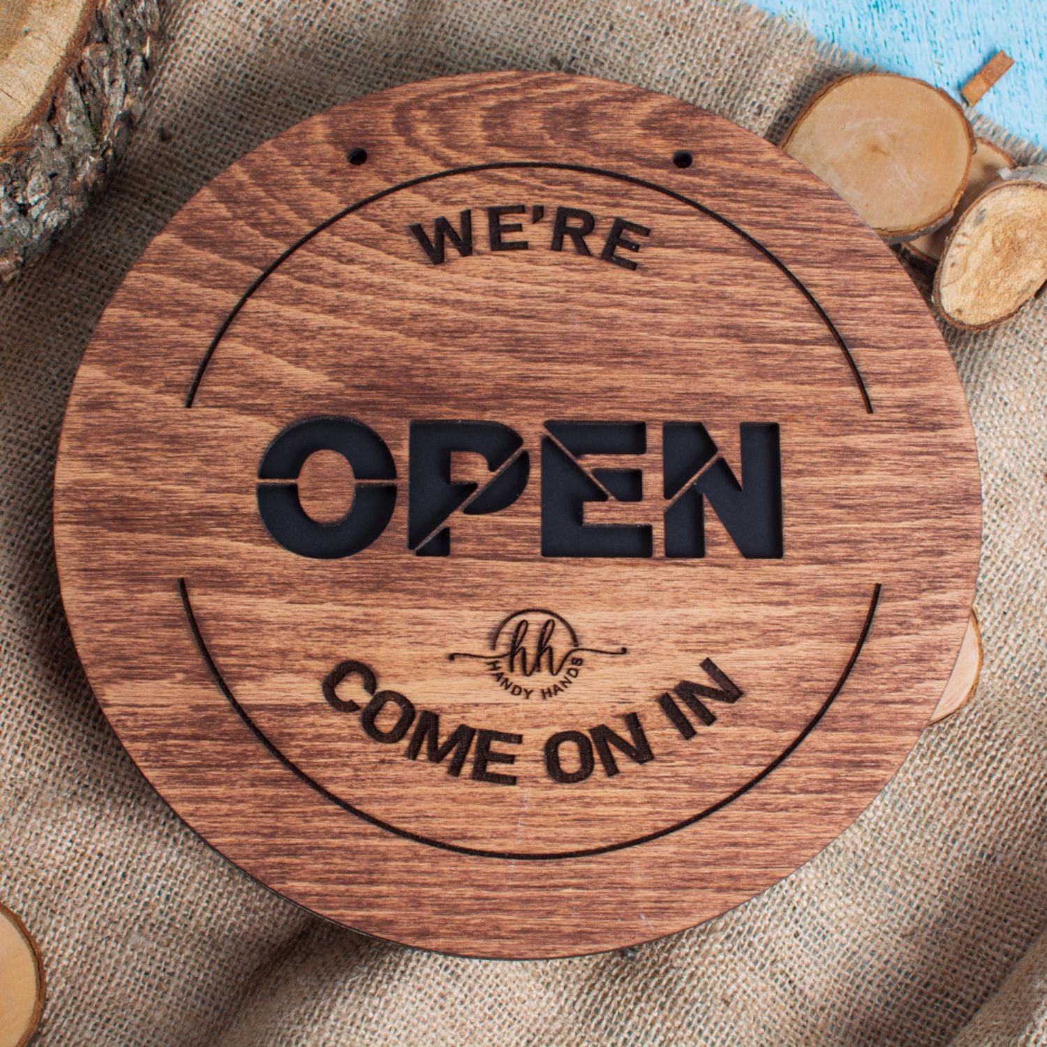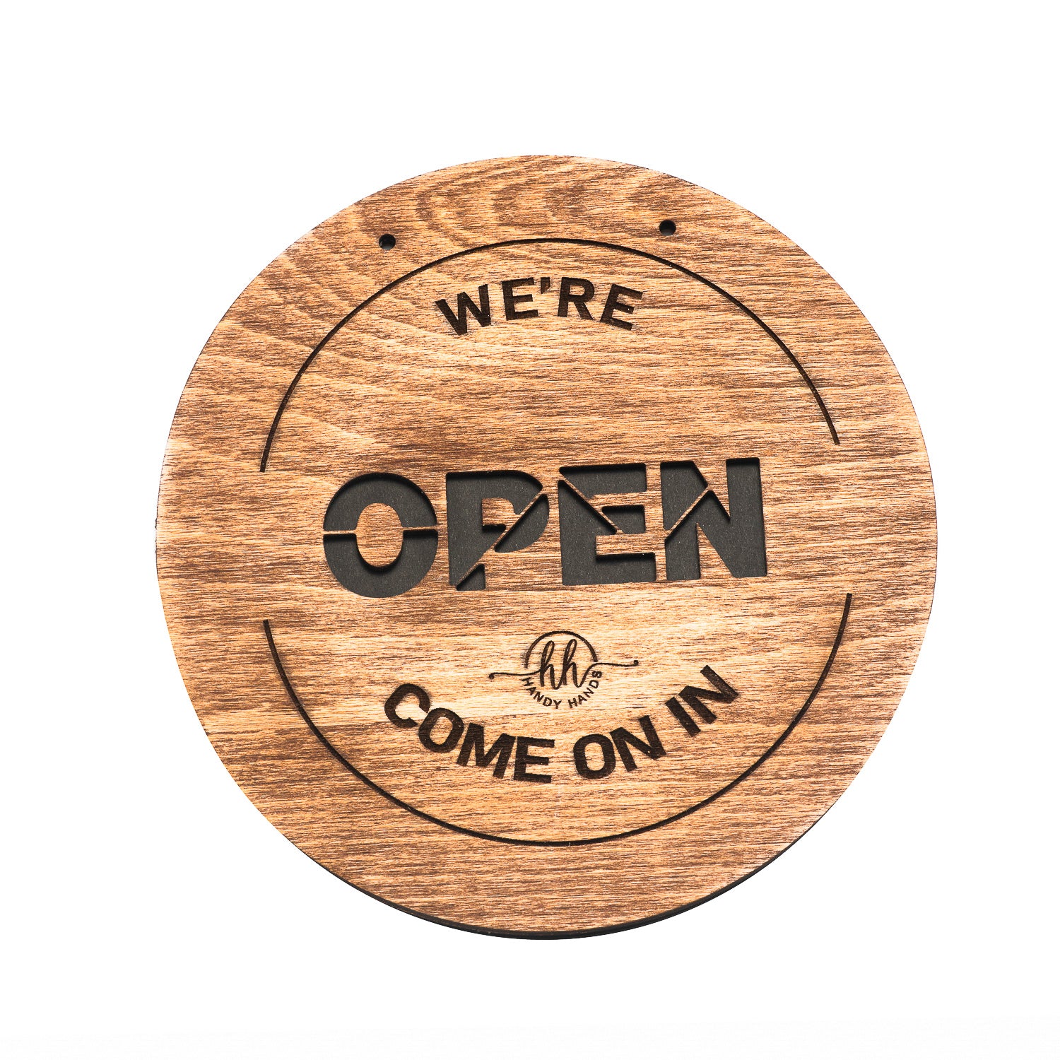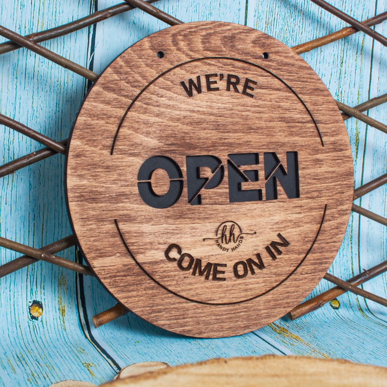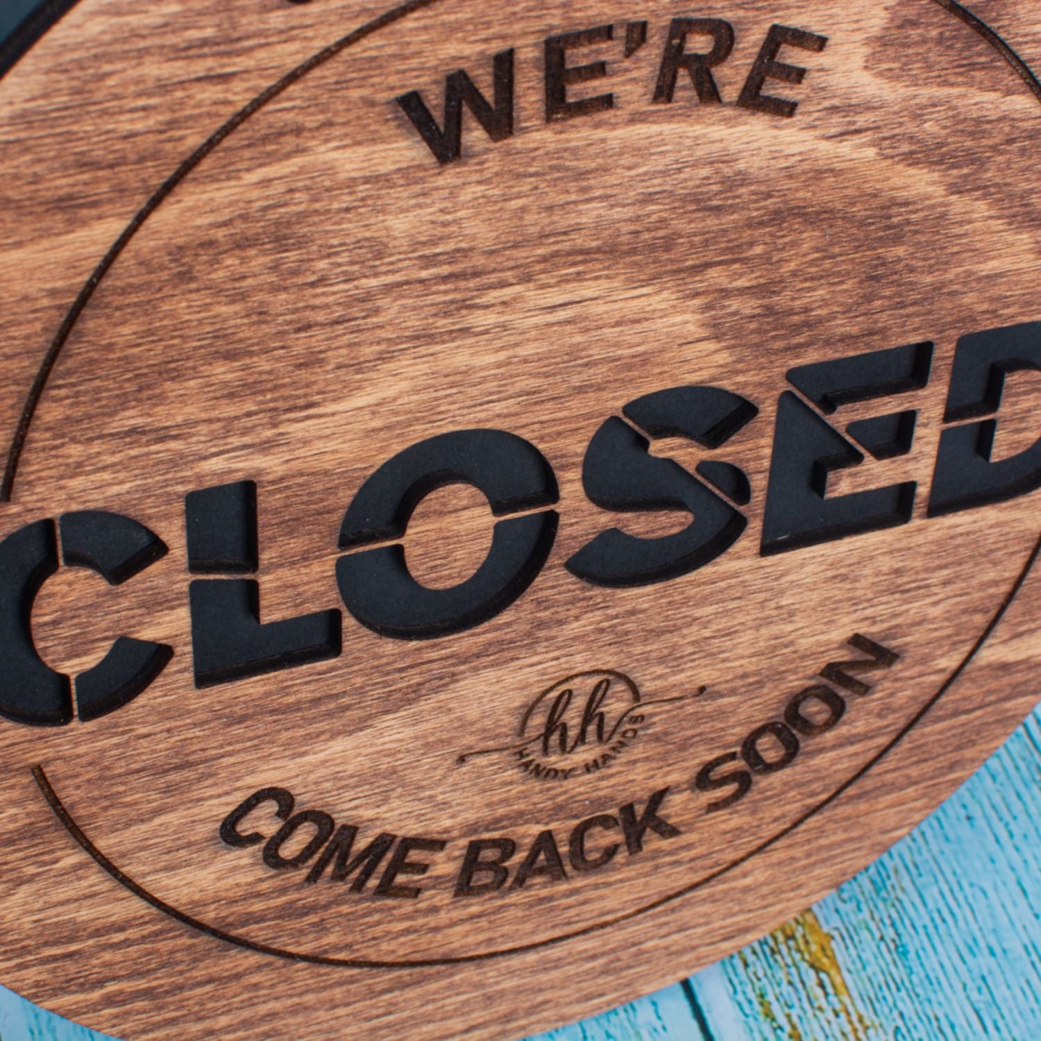 Semn de Usa cu Doua Fete din lemn HH967 Personalizat Deschis Inchis 25 cm