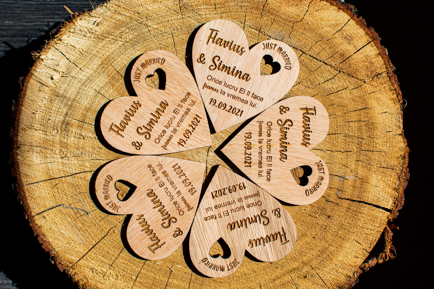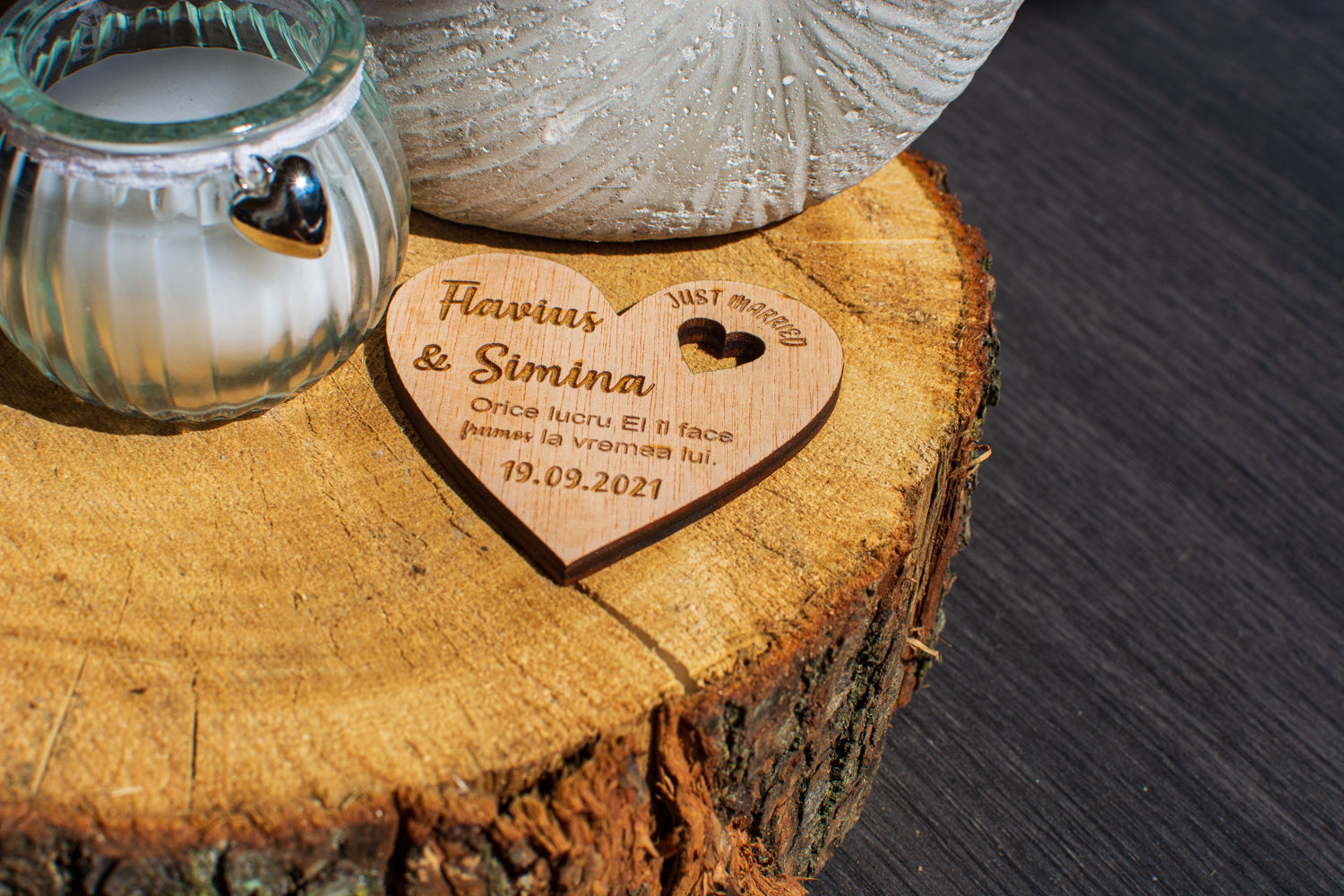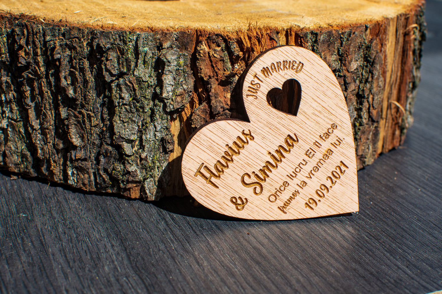 Marturia de lemn realizata de catre echipa Handy Hands este potrivita chiar si pentru un aranjament de masa. Aceasta fiind plina de eleganta va face invitatii sa zambeasca si le va ramane ca amintire ani la rand.