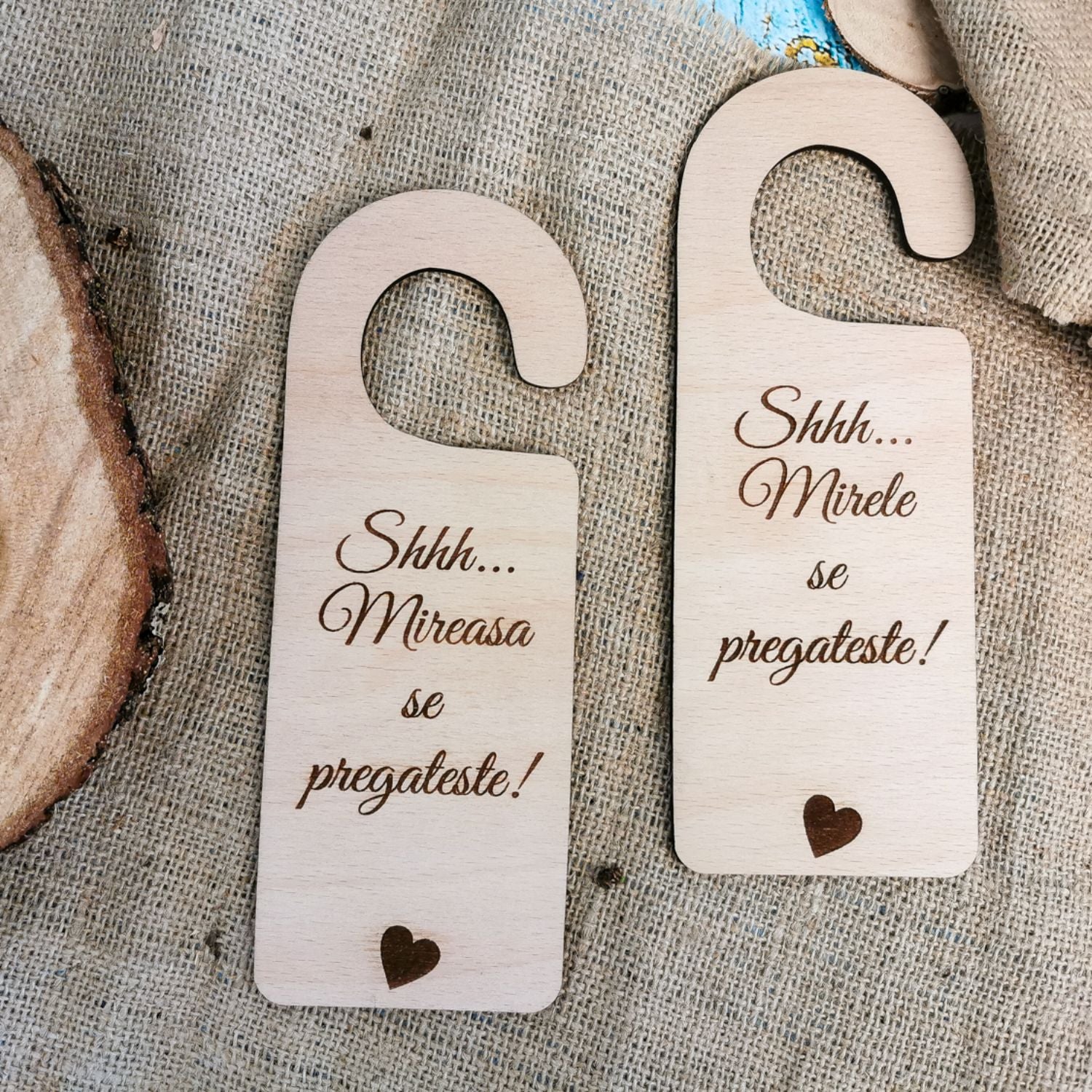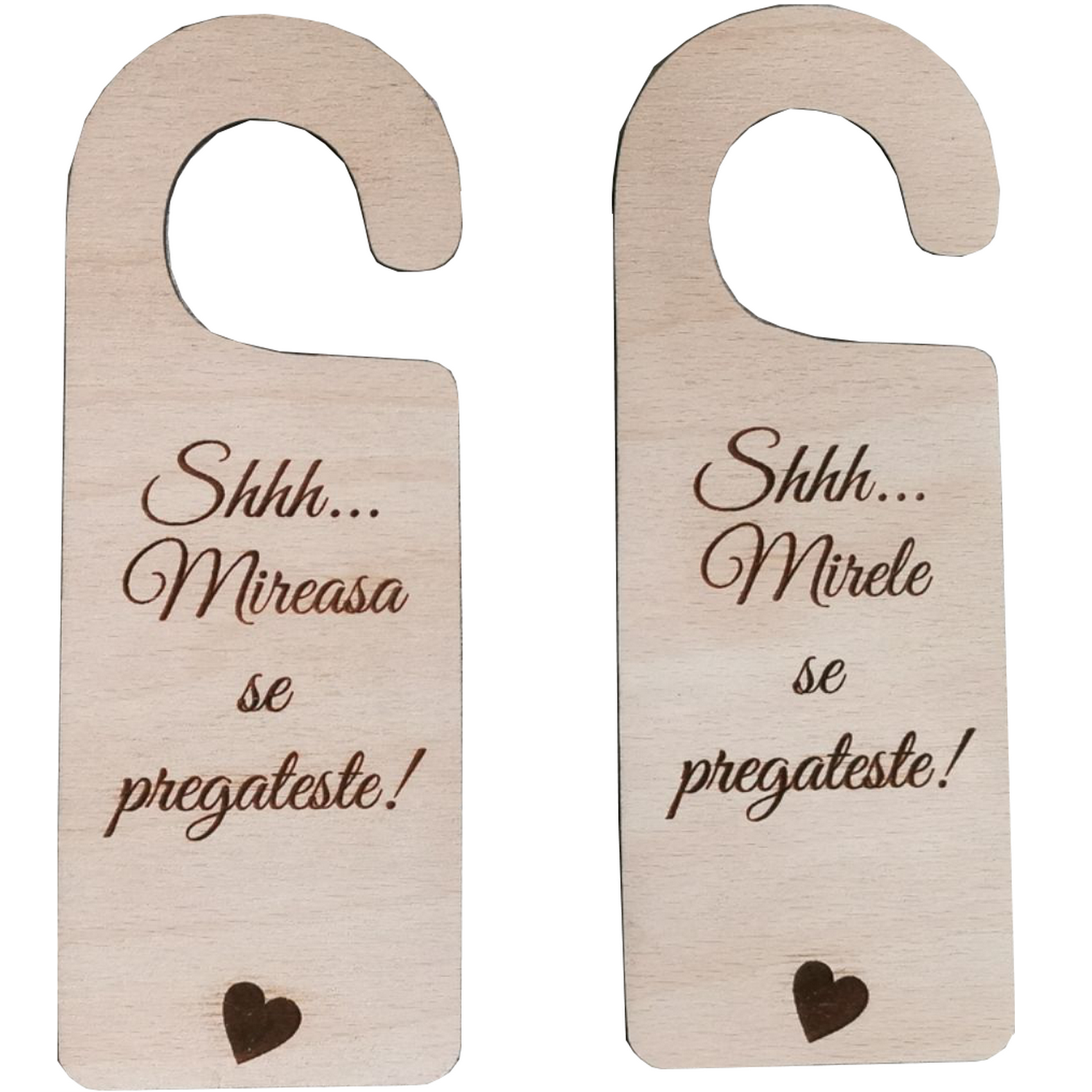 Set 2 Agatatoare HH1632 Decor Semn de Usa din lemn Personalizat Mire si Mireasa
