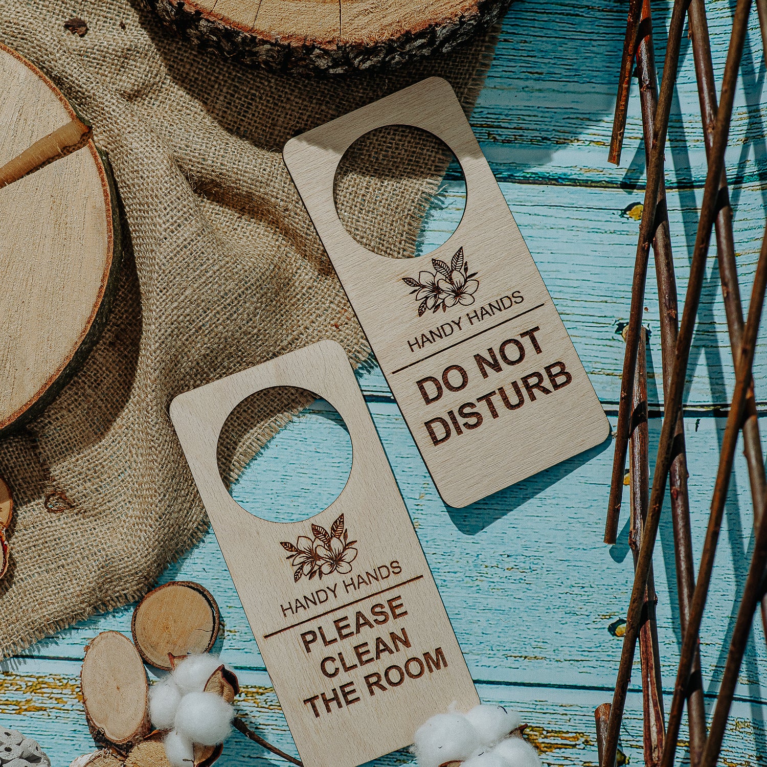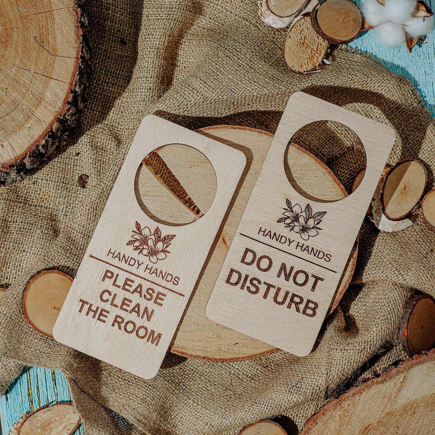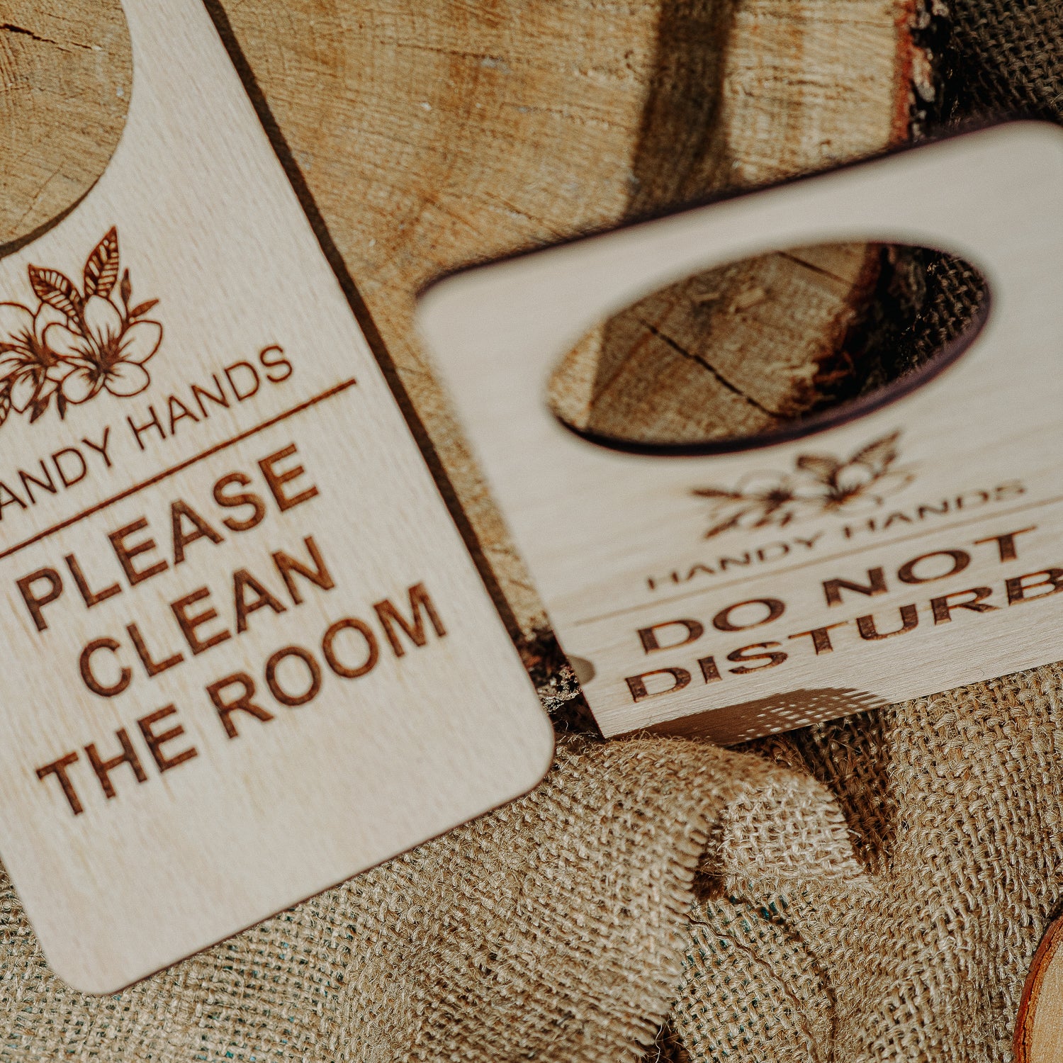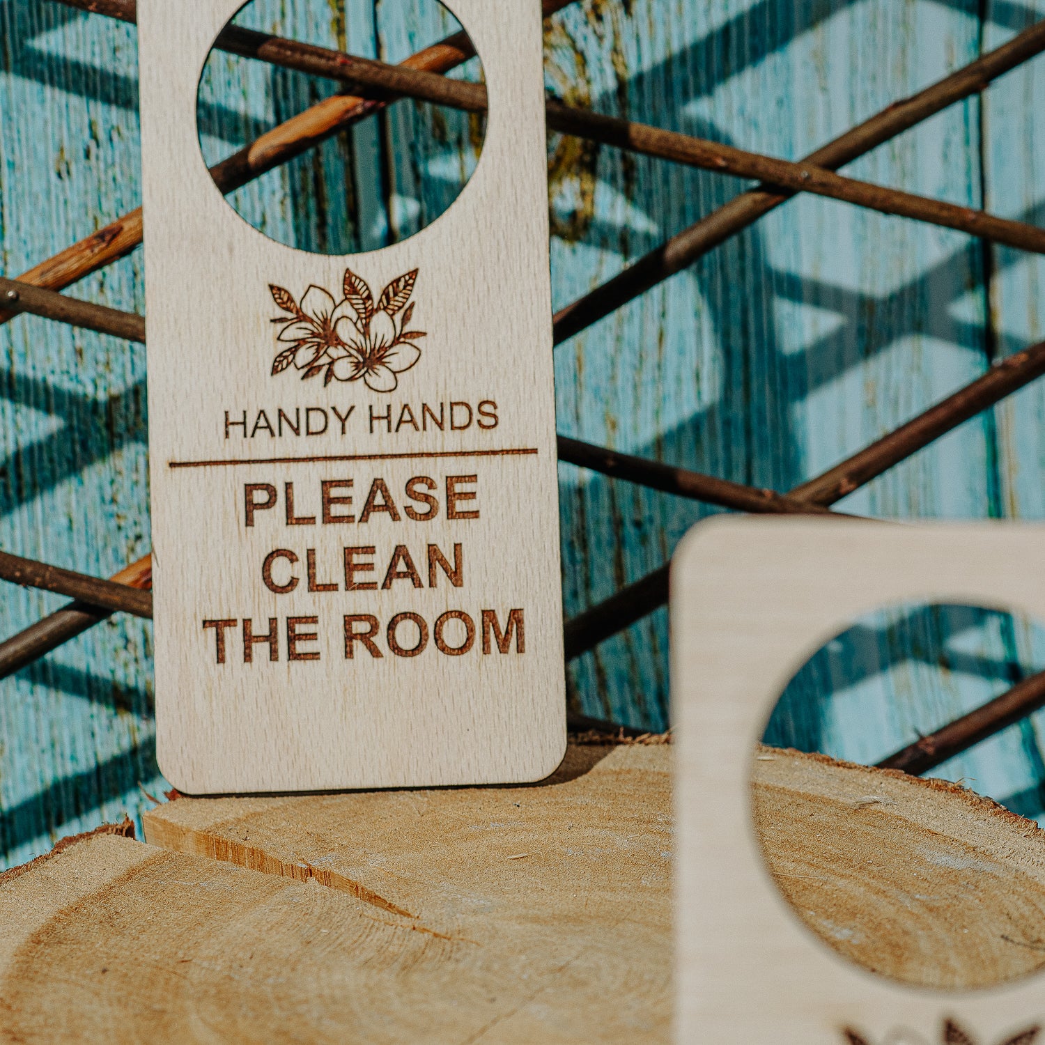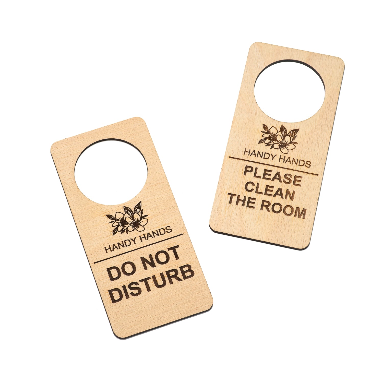 Set 2 Semne pentru Usa, din lemn HH973 Personalizat "Do Not Disturb", "Clean the Room" 9x19.5 cm