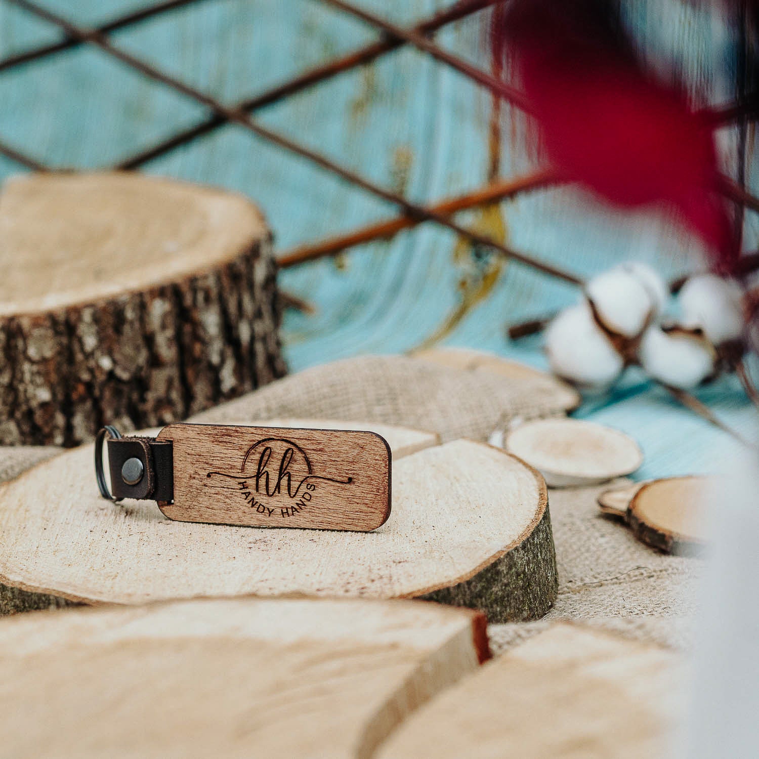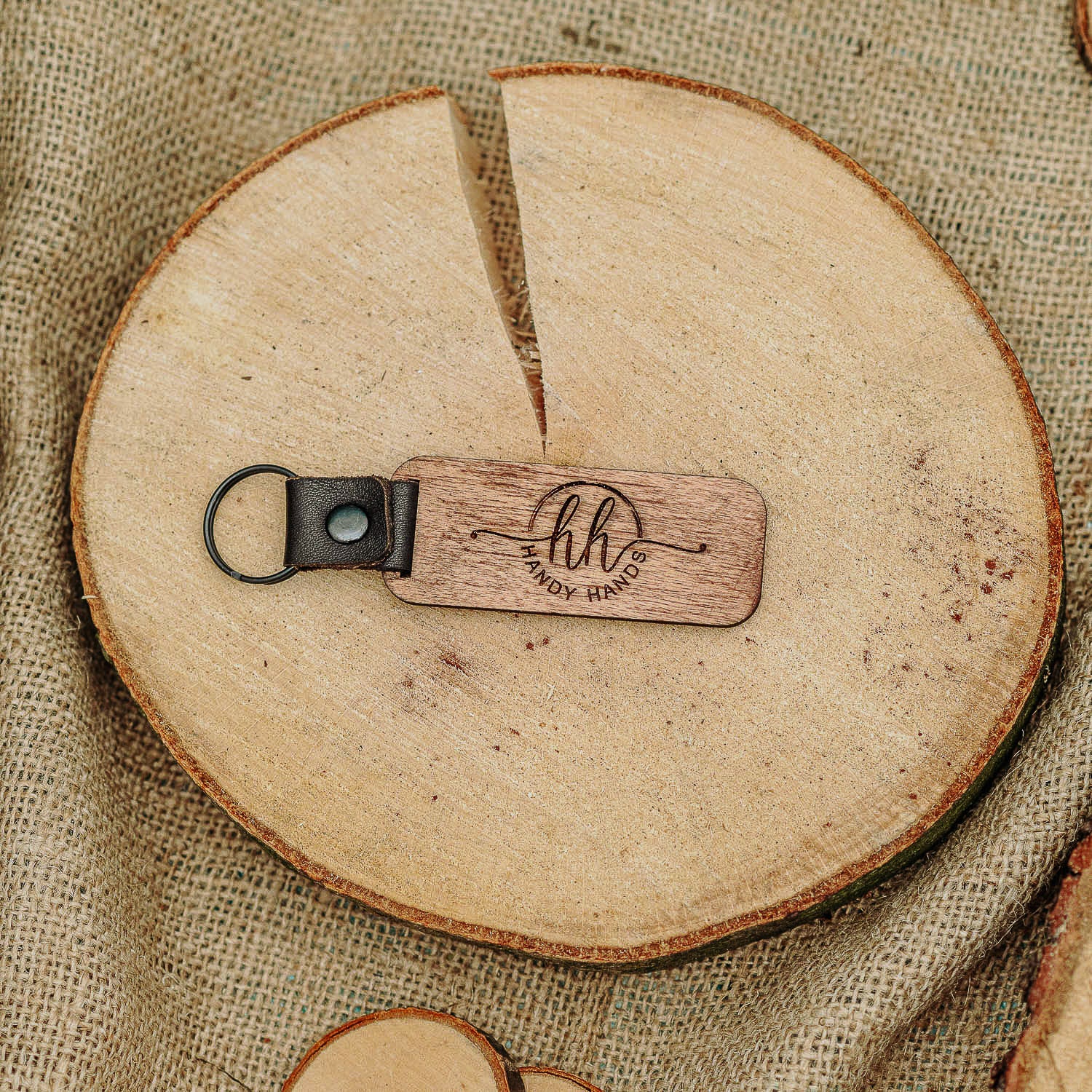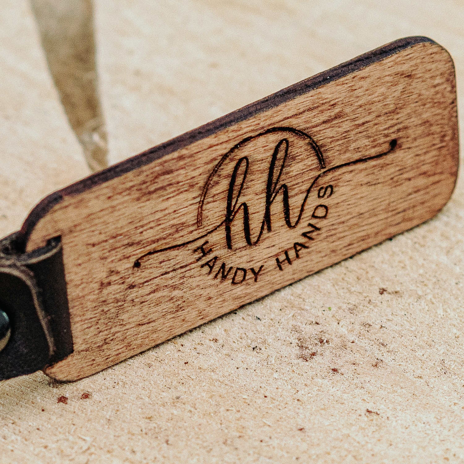 Brelocul este realizat din piele. Acesta reprezinta un accesoriu inedit, ce poate fi fata verso atat cu logo cat si cu alte informatii: nume, prenume, firma etc. Prinderea se face cu ajutorul materialului de piele de calitate catre inelul din otel inoxidabil.