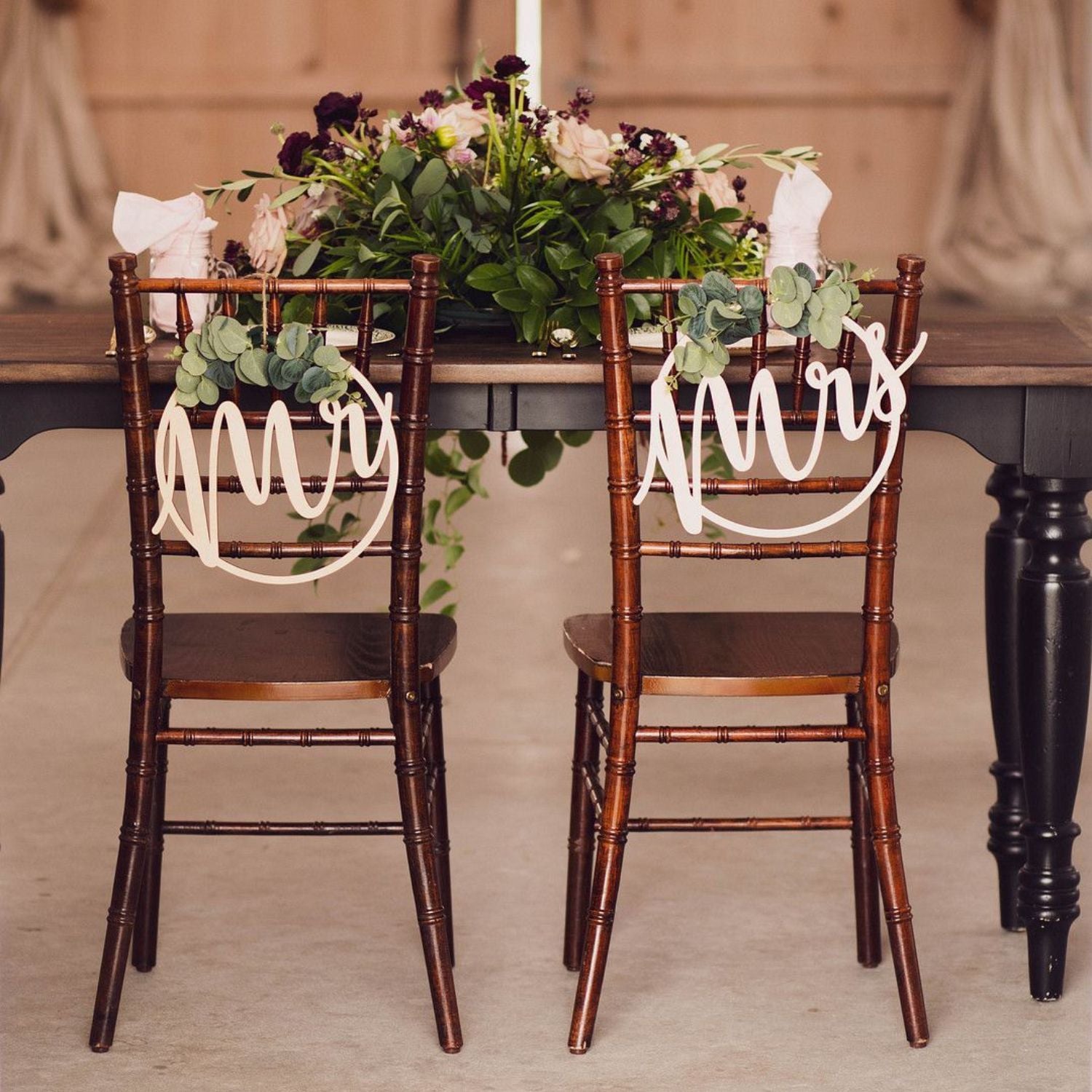 Set Decor Mr si Mrs Nunta HH1599 din Lemn pentru scaun 35 x 35 cm