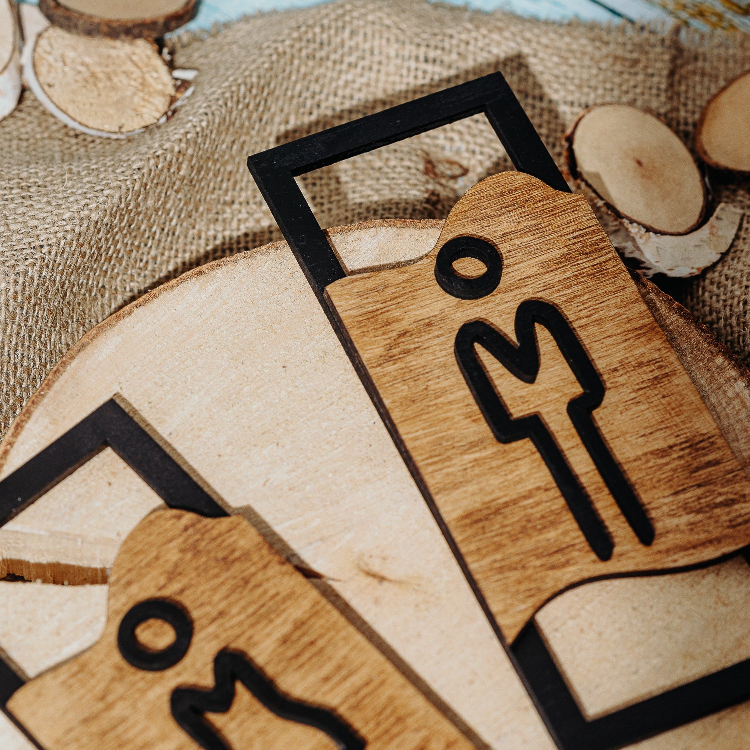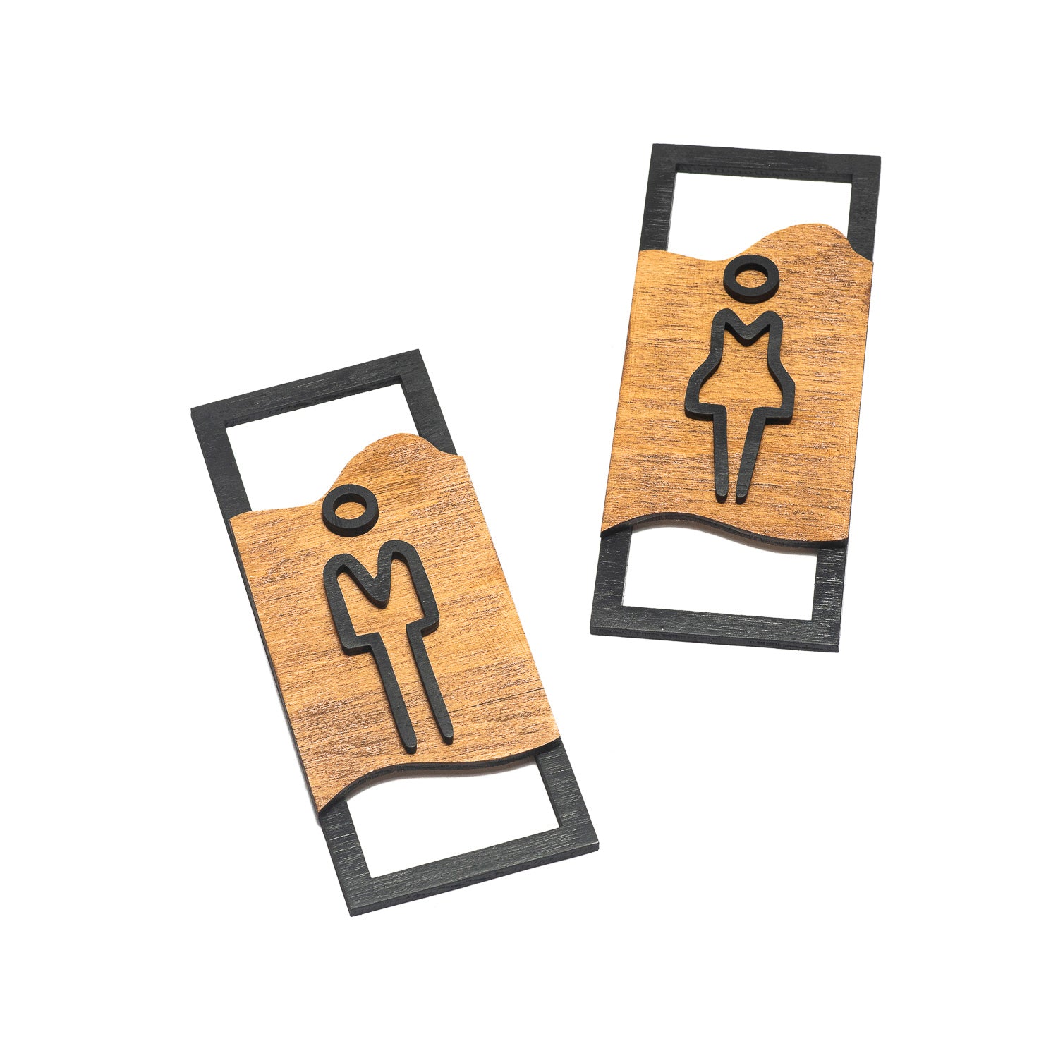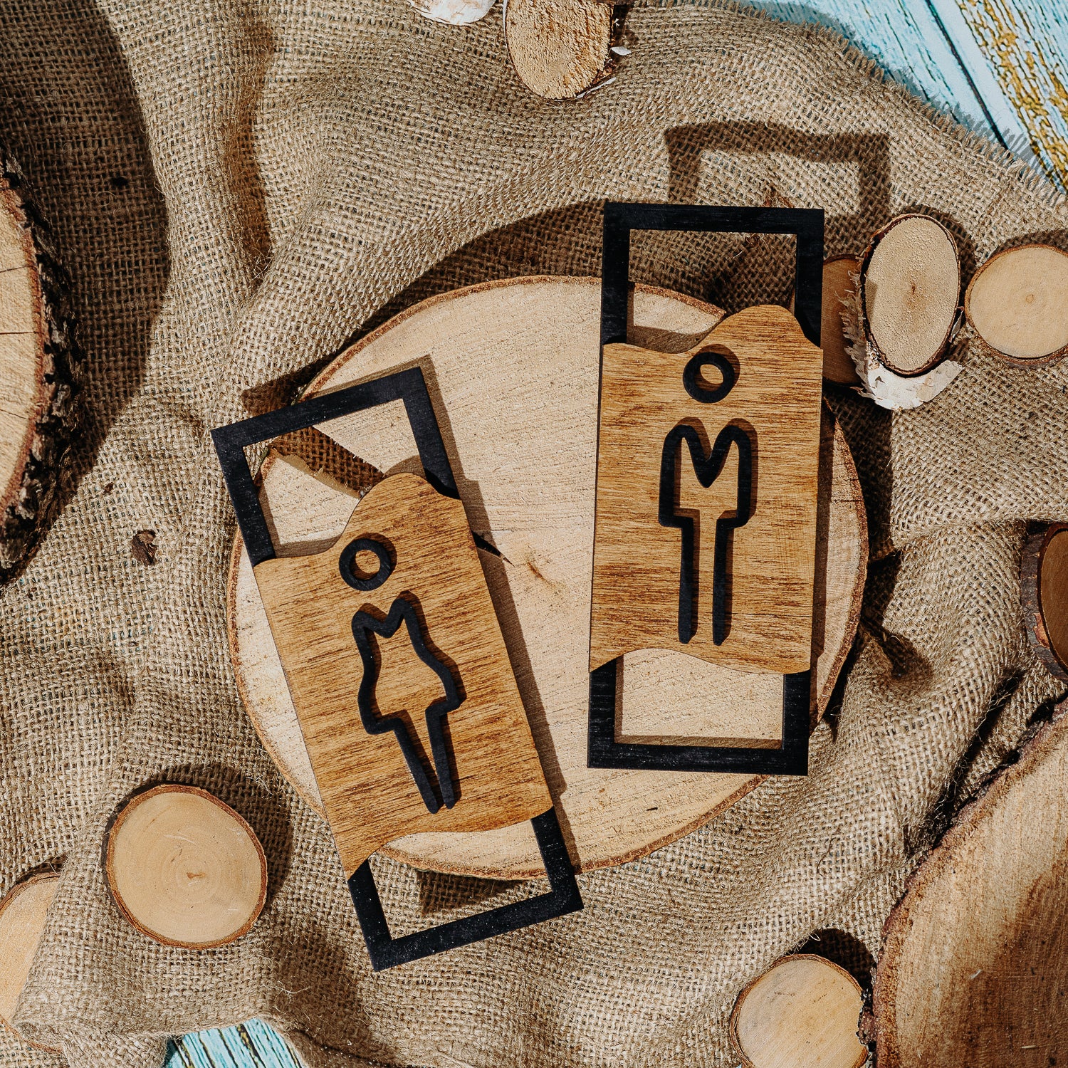 Set Doua Simboluri din lemn HH971 Semn de Toaleta Personalizat 7x18 cm