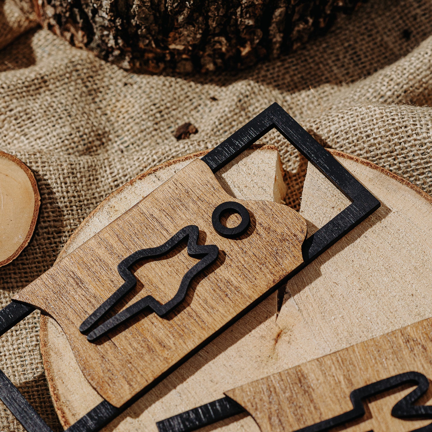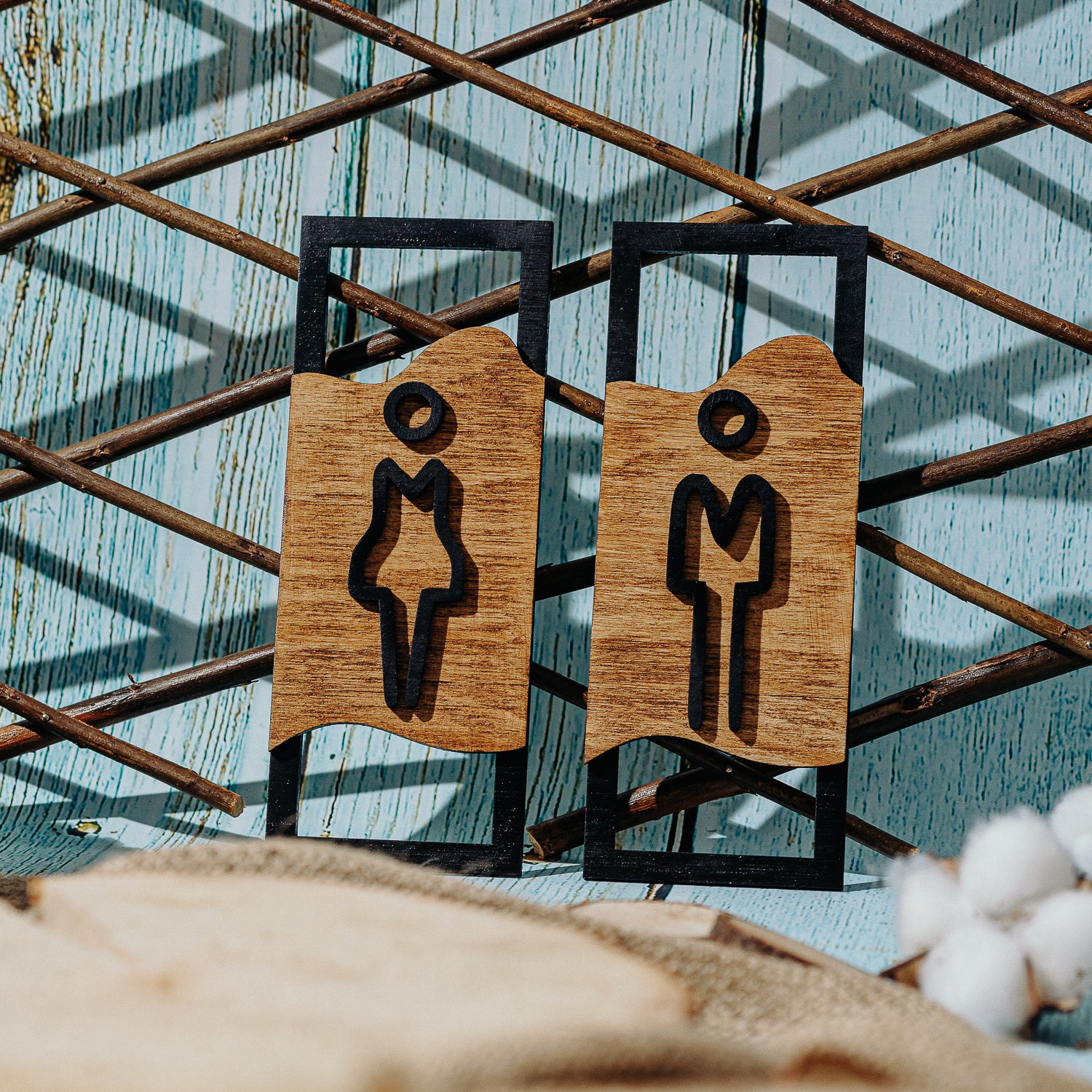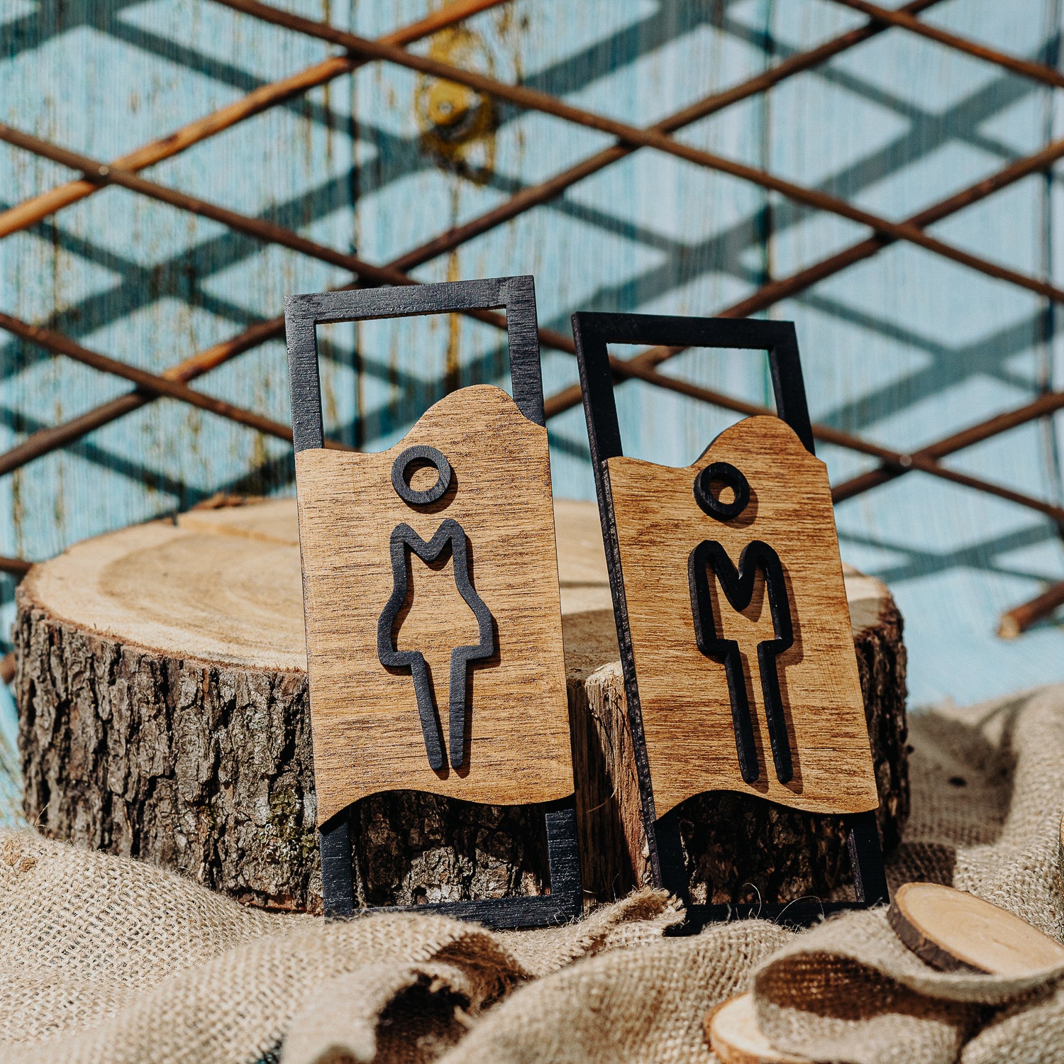 Set Doua Simboluri din lemn HH971 Semn de Toaleta Personalizat 7x18 cm